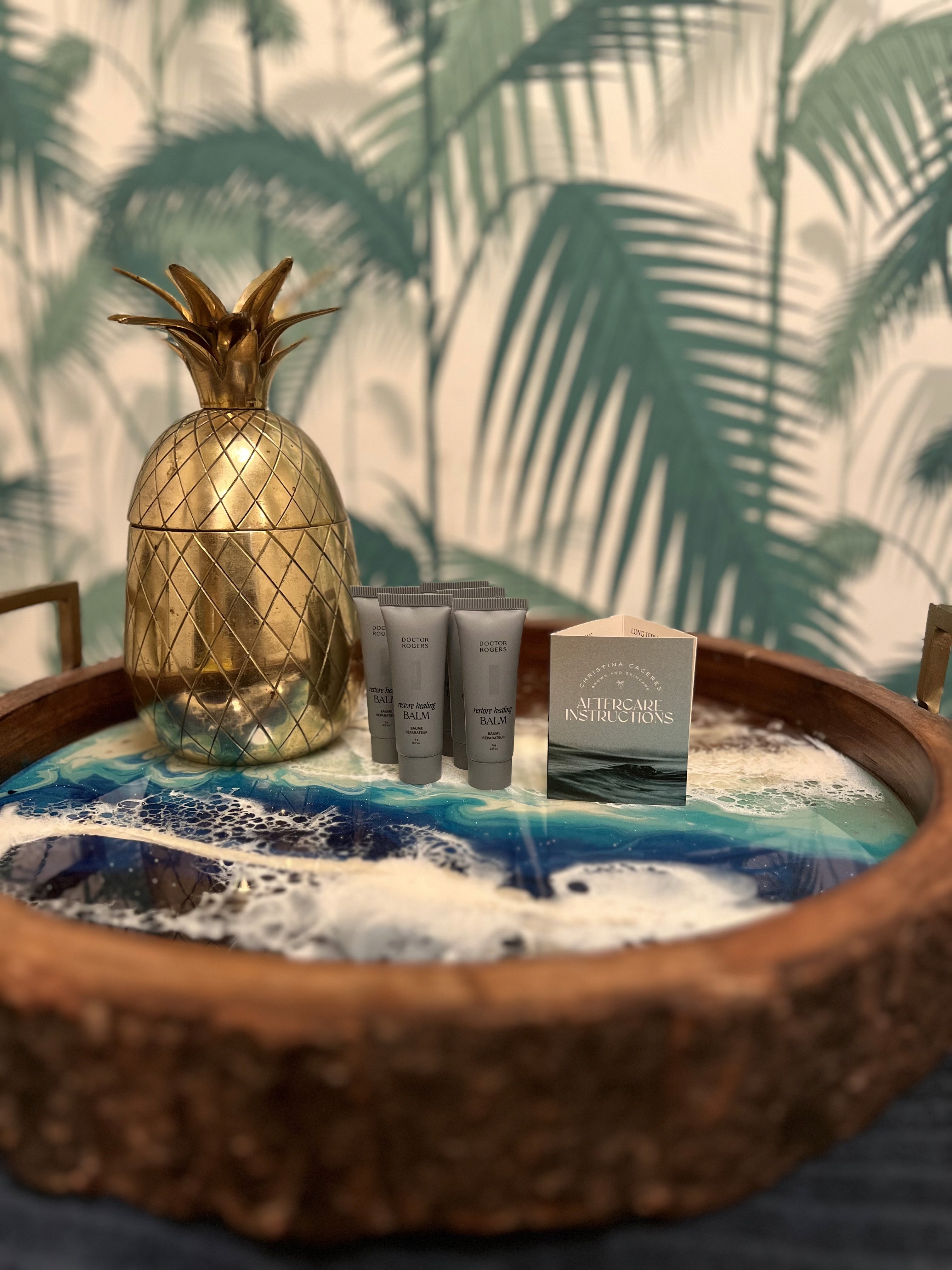 2 hours directly after treatment blot with wet cotton and then repeat every 2-3 hours when awake, then apply a thin amount of provided ointment. NOTE: We do this wet healing method because small amounts of blood and lymph will come to the surface (a natural healing process). Bacteria is attracted to the surface and blotting and applying ointment not only helps them to heal faster but prevents infection. TIP: Apply ointment before showering to prevent anything from getting in them and AVOID direct shower stream. TIP: Use cleansing cloths on forehead for easier cleaning of your skin. Brows will appear darker, and may have a slight itchy sensation or some redness. DO NOT PICK!